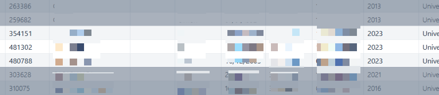 Cette option permet de griser les lignes, lors de la recherche d’un étudiant, dont l’année de scolarité est différente de l’année courante. Exemple :