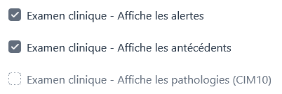 Ces options permettent de plus afficher certains éléments présents dans la fiche Examen clinique.
