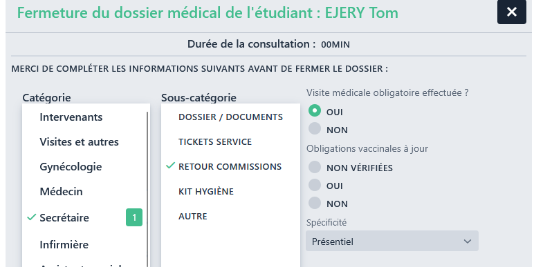 Ces options permettent de ne plus afficher certaines informations lors de l’ouverture ou fermeture d’une consultation.