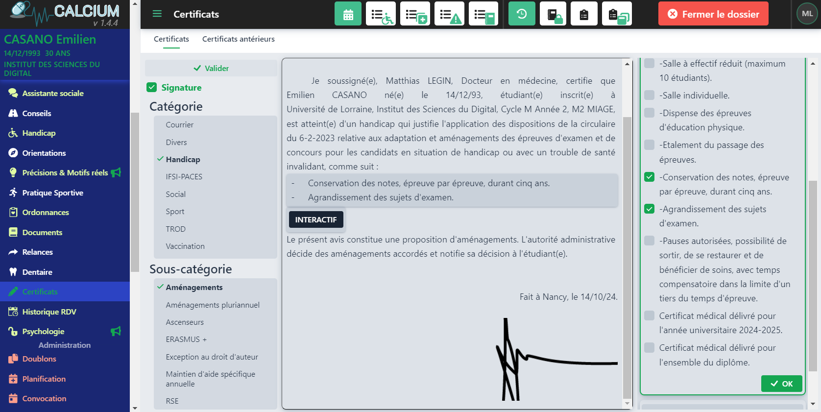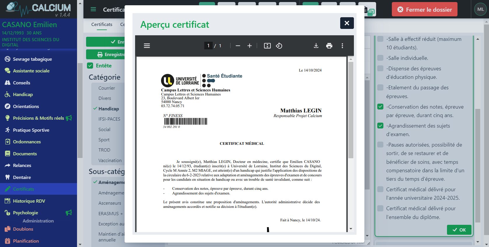 Calcium est une application développée par la Sous Direction Informatique Etudes et Développement de la Direction du Numérique de l’Université de Lorraine à destination des Services de Santé Etudiant.
